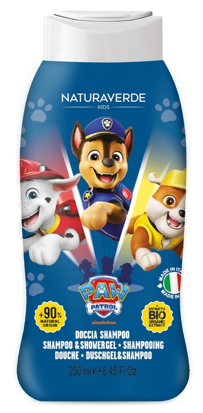 Šampon a sprchový gel v jednom s oblíbenou licencí TLAPKOVÁ PATROLA, 250 ml.